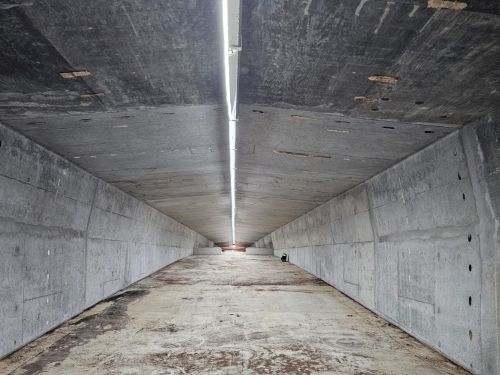 In opdracht van Van Schaick Projectbegeleiding is op de werklocatie Maldensebrug tijdelijke tunnelverlichting geïnstalleerd in de kokerbrug. Deze maatregel is getroffen ter ondersteuning van de inspectiewerkzaamheden die gepland staan voor 2025. Dankzij deze verlichting kunnen de werkzaamheden veilig en efficiënt worden uitgevoerd. De effectiviteit van de aangebrachte verlichting is duidelijk zichtbaar op de bijgevoegde foto's, waarop de verlichte tunnelomgeving goed tot zijn recht komt. Eindelijk licht aan het eind van de tunnel.